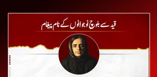 ماہ رنگ بلوچ کا جیل سے بلوچ نوجوانوں کے نام پیغام