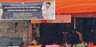 اسلام آباد: بلوچ طالب علم سعید بلوچ کی جبری گمشدگی کے…
