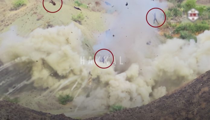 ویڈیو میں دیکھا جاسکتا ہے کہ جیسے ہی فوجی گاڑی پہاڑ کے عقب میں بنے راستے سے گزررہی ہوتی ہے اس پر زور دار دھماکہ ہوتا ہے۔ دھماکے میں گاڑی مکمل تباہ ہوتی ہے، تباہ کن دھماکے کے نتیجے میں فوجی اہلکاروں کو ہوا میں اچھلتے ہوئے دیکھا جاسکتا ہے جس سے اندازہ ہوتا ہے کہ حملے میں بھاری تعداد میں دھماکہ مواد استعمال کیا گیا ہے۔