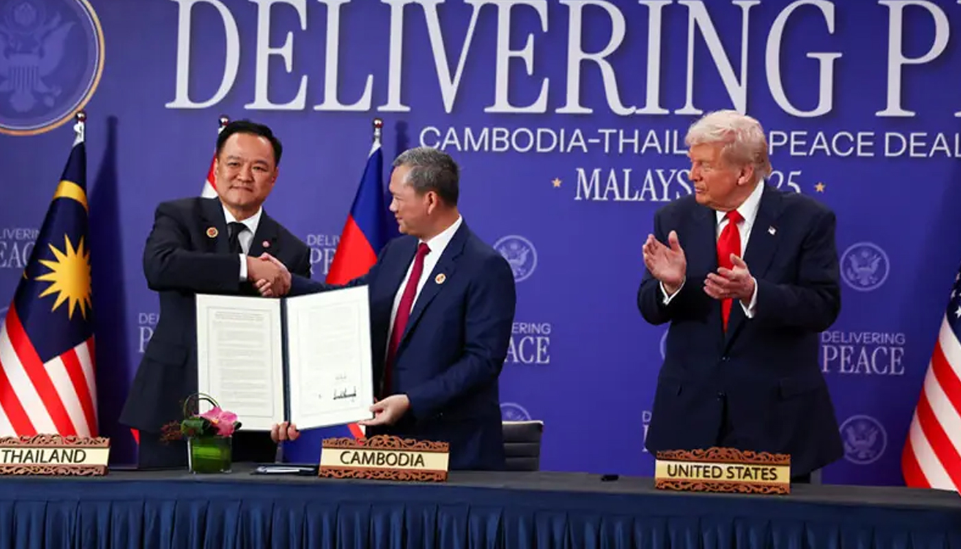 دریں اثنا، تھائی لینڈ اور کمبوڈیا کے رہنماؤں نے اتوار کے روز امریکی صدر ڈونلڈ ٹرمپ کی موجودگی میں ایک جامع جنگ بندی معاہدے پر دستخط کیے۔ ٹرمپ نے جولائی میں مداخلت کرتے ہوئے دونوں ممالک کے درمیان جاری پانچ روزہ خونریز سرحدی تنازع کو ختم کرانے میں کردار ادا کیا تھا۔
