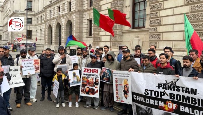 مظاہرین نے لندن میں برطانوی فارن کامن ویلتھ اینڈ ڈویلپمنٹ آفس کے سامنے جمع ہو کر عالمی برادری سے زہری اور خضدار میں جاری فوجی محاصرے پر خاموشی توڑنے کا مطالبہ کیا۔