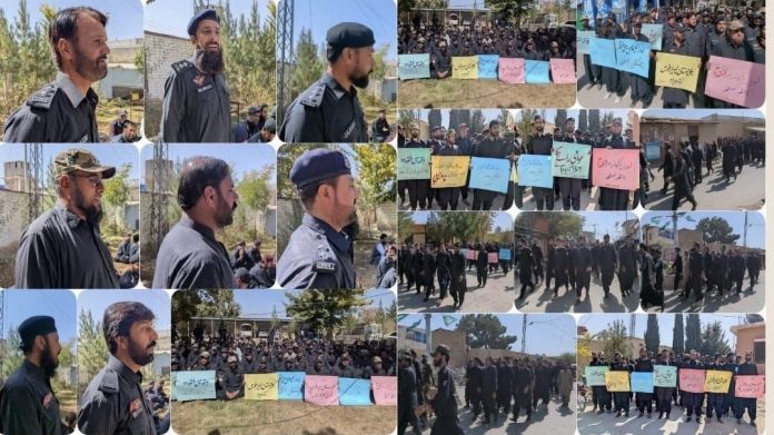 قلات میں لیویز اہلکاروں نے لیویز فورس کو پولیس میں ضم کرنے کے حکومتی فیصلے کے خلاف احتجاجی مظاہرہ کیا۔