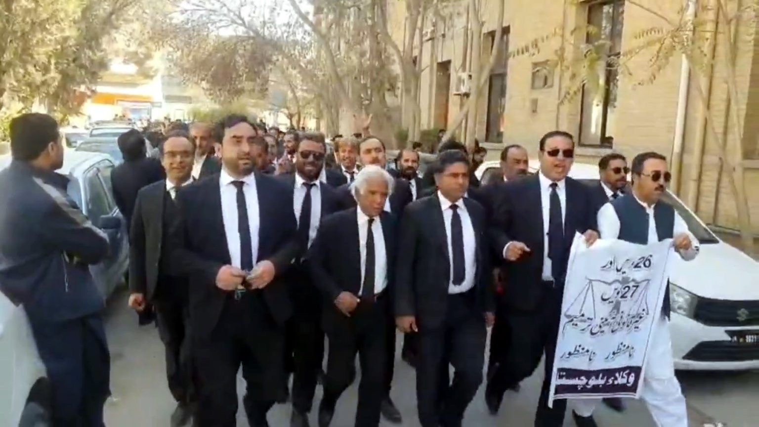کوئٹہ میں 26ویں اور 27ویں آئینی ترامیم کے خلاف وکلاء کا احتجاجی ریلی