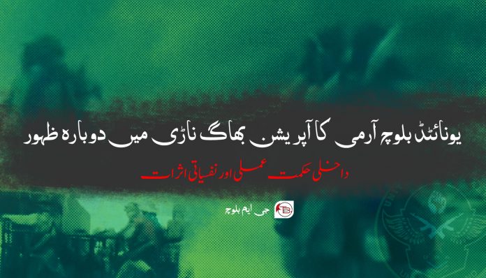 یونائٹڈ بلوچ آرمی کا آپریشن بھاگ ناڑی میں دوبارہ ظہور، داخلی حکمت عملی اور نفسیاتی اثرات – جی ایم بلوچ