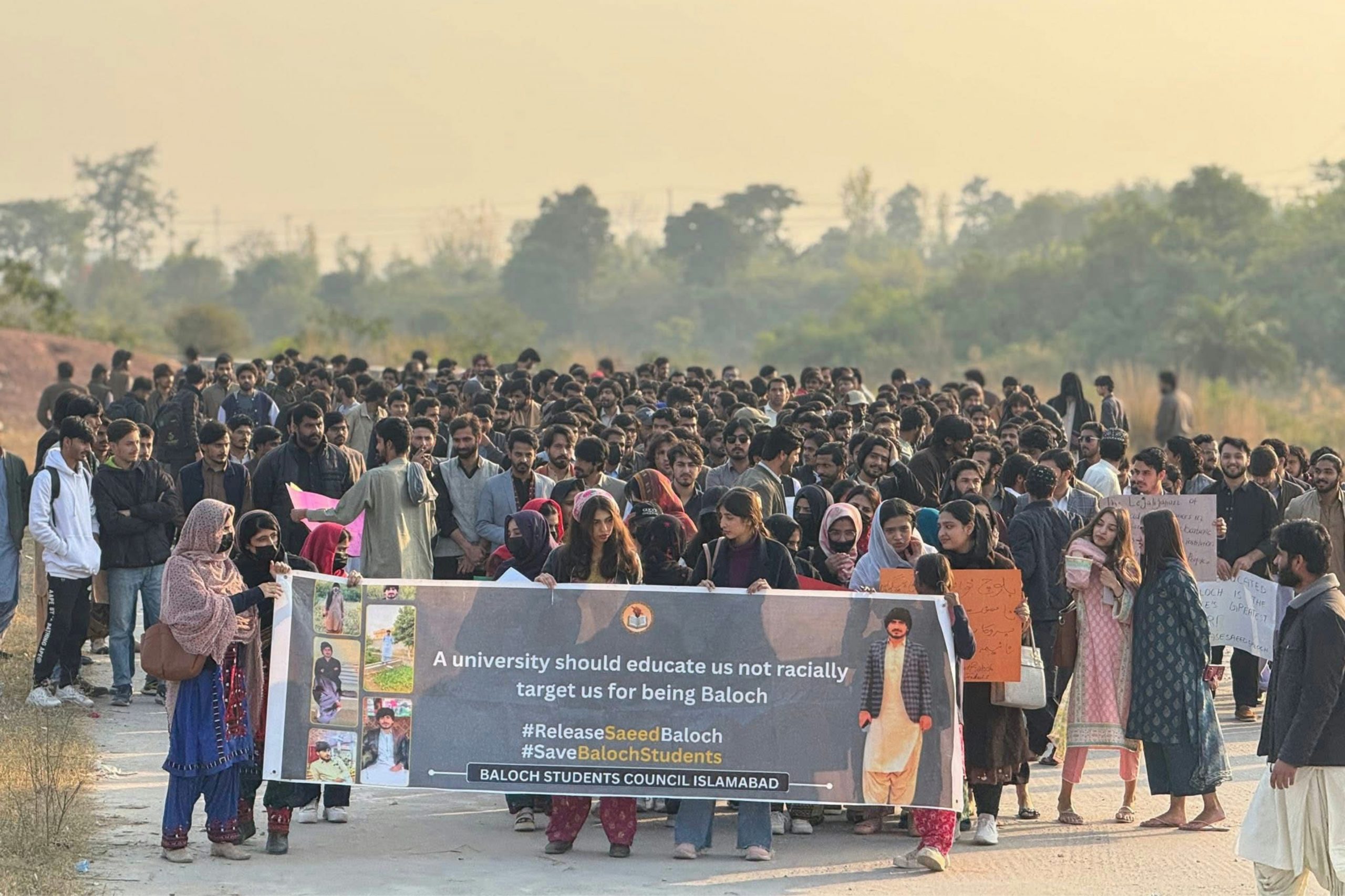 بلوچ اسٹوڈنٹس کونسل اسلام آباد کی جانب سے قائداعظم یونیورسٹی میں جاری دھرنا آج نویں روز میں داخل ہو گیا۔ طلبہ کا کہنا ہے کہ وہ اپنے واضح اور جائز مطالبات کے لیے پُرامن اور منظم جدوجہد جاری رکھے ہوئے ہیں۔