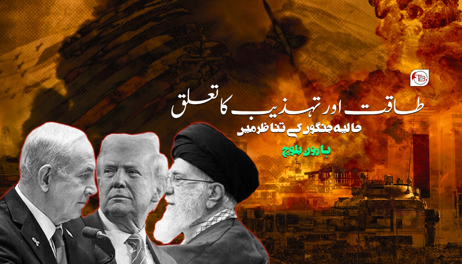 طاقت کا تہذیب کے ساتھ رشتہ ایسے ہے جیسے انسانی جسم کا روح کے ساتھ۔ دنیا میں ایسی کوئی بھی تہذیب غیر معنیٰ اور بے مقصد ہے جو طاقت حاصل کرنے سے محروم ہو، اور بدترین تہذیب وہی ہے جو محرومی پر قائم ہو۔ ایسی تہذیب، جو قوموں کی بنیاد ہوتی ہے، ان کے زندہ رہنے کے لیے طاقت کا اصول اور طاقت کا قائم رہنا ضروری ہے۔ آج مغرب یا امریکہ ایران پر صرف جوہری ہتھیار حاصل نہ کرنے کے لیے حملہ آور نہیں ہیں، بلکہ وہ مغربی تہذیب کو بچائے رکھنا اور اس کا غلبہ قائم رکھنے کے لیے لڑ رہے ہیں، کیونکہ ایران کی ناکامی صرف ایک ریاستی ناکامی نہیں بلکہ پارسی تہذیب کی ناکامی ہوگی اور شعیہ نظریے کی دنیا بھر میں غیر مؤثر ہونے کی بنیاد بنے گی، جو امریکہ اور مغرب کی تہذیب کے لیے ایک خطرہ ہے۔ اس خطے میں مغربی تہذیب کے سامنے رکاوٹ طاقت کا خاتمہ ہوگی، کیونکہ طاقت ایک تہذیب کا سب سے عملی اور حقیقی شکل ہے۔ موجودہ عالمی آرڈر اور تعلیم جس کی بنیاد یورپ ہے، اس کے اندر طاقت ہی تہذیب کا عملی نمونہ ہے۔ یہی وجہ ہے کہ آج دنیا میں سیاہ چہرے والے لوگوں کو خوبصورتی کے زمرے میں شامل نہیں کیا جاتا، اور جب کوئی انسان سیاہ رنگ میں جنم لیتا ہے اور وہ وائٹ لوگوں کے اندر رہتا ہے، تو وہ مسلسل تذلیل اور کم انسانیت محسوس کرتا ہے۔ اگر آج دنیا پر افریقہ کا قبضہ ہوتا اور یہی طاقت افریقی لوگوں کے ہاتھوں میں ہوتی جو آج مغربی طاقتوں کے پاس ہے، تو یقیناً سیاہ انسان ہونا کسی کے لیے بھی خوشی کا سبب ہوتا، اور سفید ہونے سے انسان کو نفرت ہوتی۔