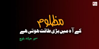 مظلوم کے آہ میں بڑی طاقت ہوتی ہے – سمیر جیئند...