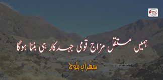 ہمیں مستقل مزاج قومی جہدکار ہی بننا ہوگا – سہُراب بلوچ