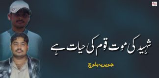 شہید کی موت قوم کی حیات ہے ۔ جویریہ بلوچ