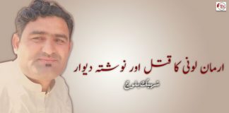 ارمان لونی کا قتل اور نوشتہ دیوار – شہیک بلوچ