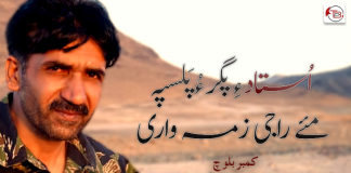 اُستاد ءِ پگر ءُ پَلسپہ، مئے راجی زمہ واری -کمبر بلوچ