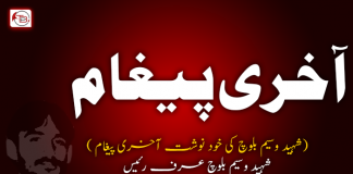 شہید وسیم بلوچ کی خود نوشت آخری پیغام