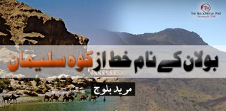 بولان کے نام خط از کوہ سلیمان – مرید بلوچ