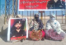 بلوچستان کے ضلع مستونگ کے رہائشی سعید احمد کی عدم بازیابی کے خلاف لواحقین کا مستونگ میں احتجاج اور دھرنا جاری ہے۔