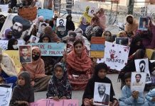 لاپتہ افراد کے لواحقین گذشتہ اٹھائیس روز سے دھرنے پر بیٹھے ہوئے لواحقین اپنے پیاروں کی بازیابی کا مطالبہ کررہے ہیں-