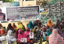 پاکستانی فورسز کے ہاتھوں حراست بعد لاپتہ ہونے والے افراد کے لواحقین کراچی پریس کلب کے سامنے احتجاجی کیمپ لگائے بیٹھےہیں۔