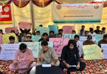 پنجاب اسلامیہ یونیورسٹی بہاولپور میں بلوچستان کے بلوچ پشتون طلباء کا مطالبات کے حق میں احتجاجی دھرنا آج بھی جاری رہا۔طلباء بلوچستان کے ریزرو سیٹوں پر فیسوں کی وصولی، انتظامیہ کی جانب سے طلباء کو ہراساں کرنے کے خلاف دھرنا دیئے ہوئےہیں-