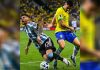 برازیل اور ارجنٹینا کی فٹبال میچ، اسٹیڈیم میدان جنگ کا منظر...