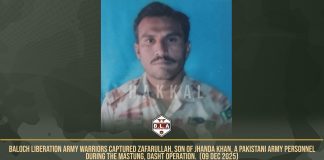بلوچ لبریشن آرمی نے زیر حراست پاکستانی فوجی اہلکار کی تصویر...