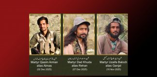 چیئرمین بی ایس او آزاد درپشان بلوچ کا دی بلوچستان پوسٹ…