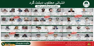 حکومت کا انتہائی مطلوب افراد کی فہرست جاری: بی ایل اے…